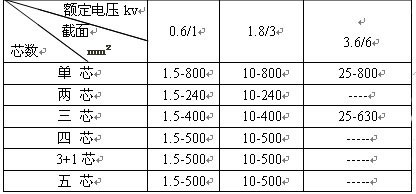 1、 聚氯乙烯绝缘电力电缆电压,芯数及截面范围。