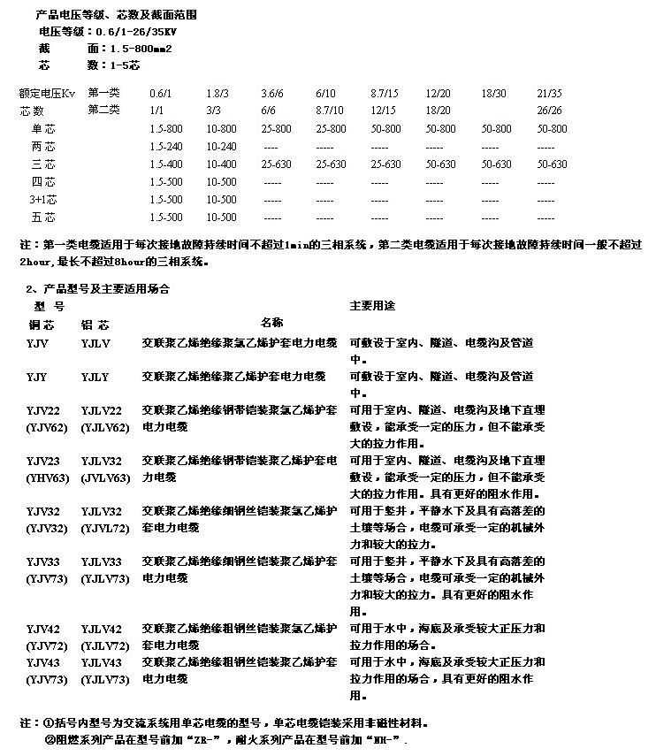 交联聚乙烯绝缘电力电缆一般简称为交联电缆,具有工作温度高,传输容量大,电器性能优良,敷设落差不受限制及安装维护方便等特点,是电力电缆发展的方向性产品。